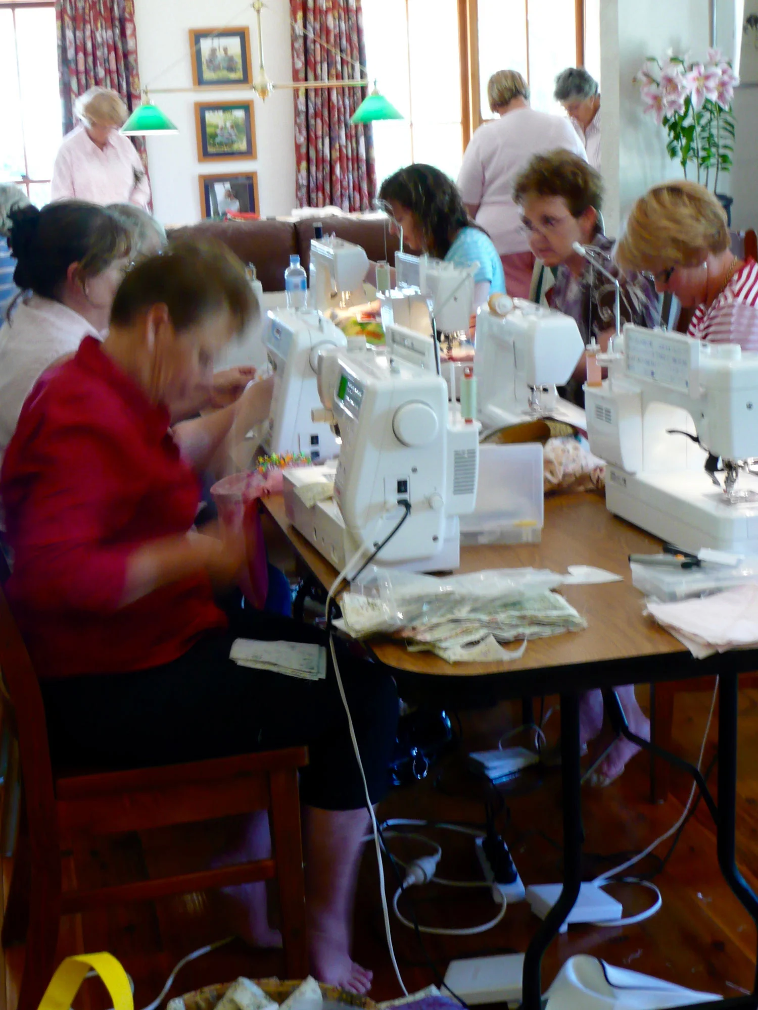The photo is blurred, but reflects the flurry of activity! These women do not dillydally. They are talented & proficient quilters & churn out projects quickly & beautifully! Didn't get many photos so head on over to our club blog to see what everyone got up to.